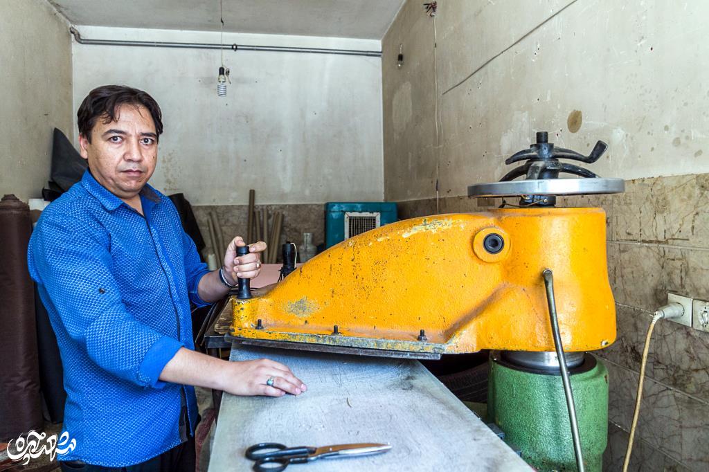 جعفر رحیمی کارش برش رویه کفش و کیف است و نزدیک 5سال در این محدوده کسب میکند. البته در کوچه مجاور خیلیها حرفه او را دارند.