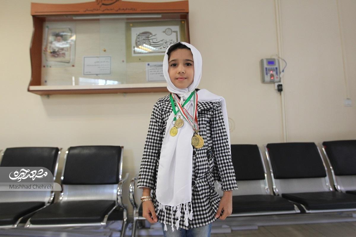 وقتی از او میخواهم خودش را معرفی کند با همه شتابی که در حرف زدن دارد، نام خدا را فراموش نمیکند و به سرعت میگوید: «به نام خدا، آیدا نیازمند، ساکن محله سیدی مشهد». چند سؤال بعدی را پشت سرهم از او میپرسم که بیشتر برایم صحبت کند؛ میگوید: هشتسالم است و ژیمناستیک کار میکنم، (با مکثی) و از سه سال پیش این ورزش را شروع کردم.