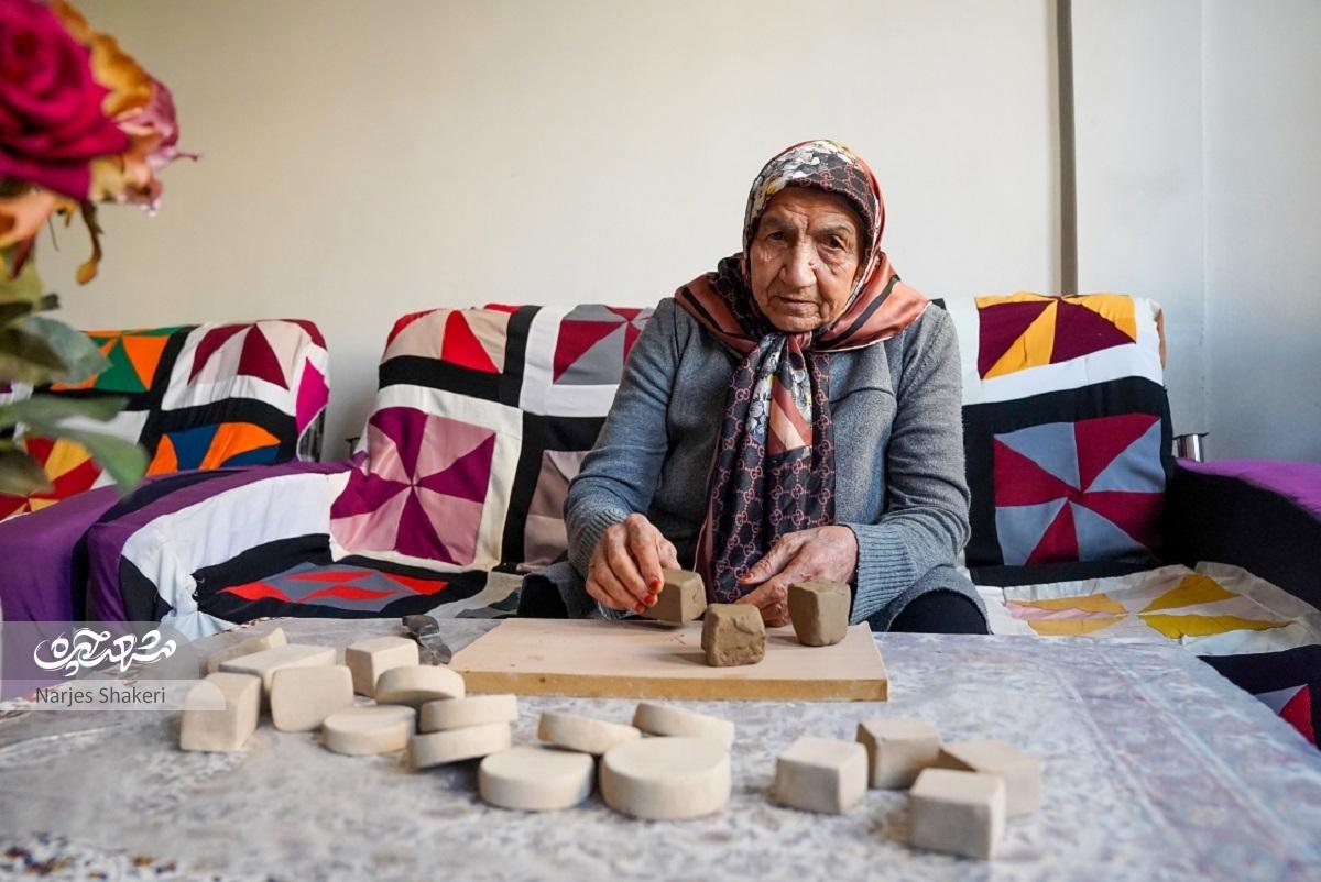 خاطرم هست مرحوم همسرم همیشه میگفت «زن! بس است. چقدر این خمیرها را مشت میکنی؟ دست و شانه برایت نماند.»، اما حقیقت این است که من موقع این کار اصلا احساس درد ندارم که هیچ، آرامش خوبی دارم و از اینکه با ساخت هر مهر، کار نیکی برای خودم و به نیت پسر مرحومم انجام میدهم، خوشحالم.