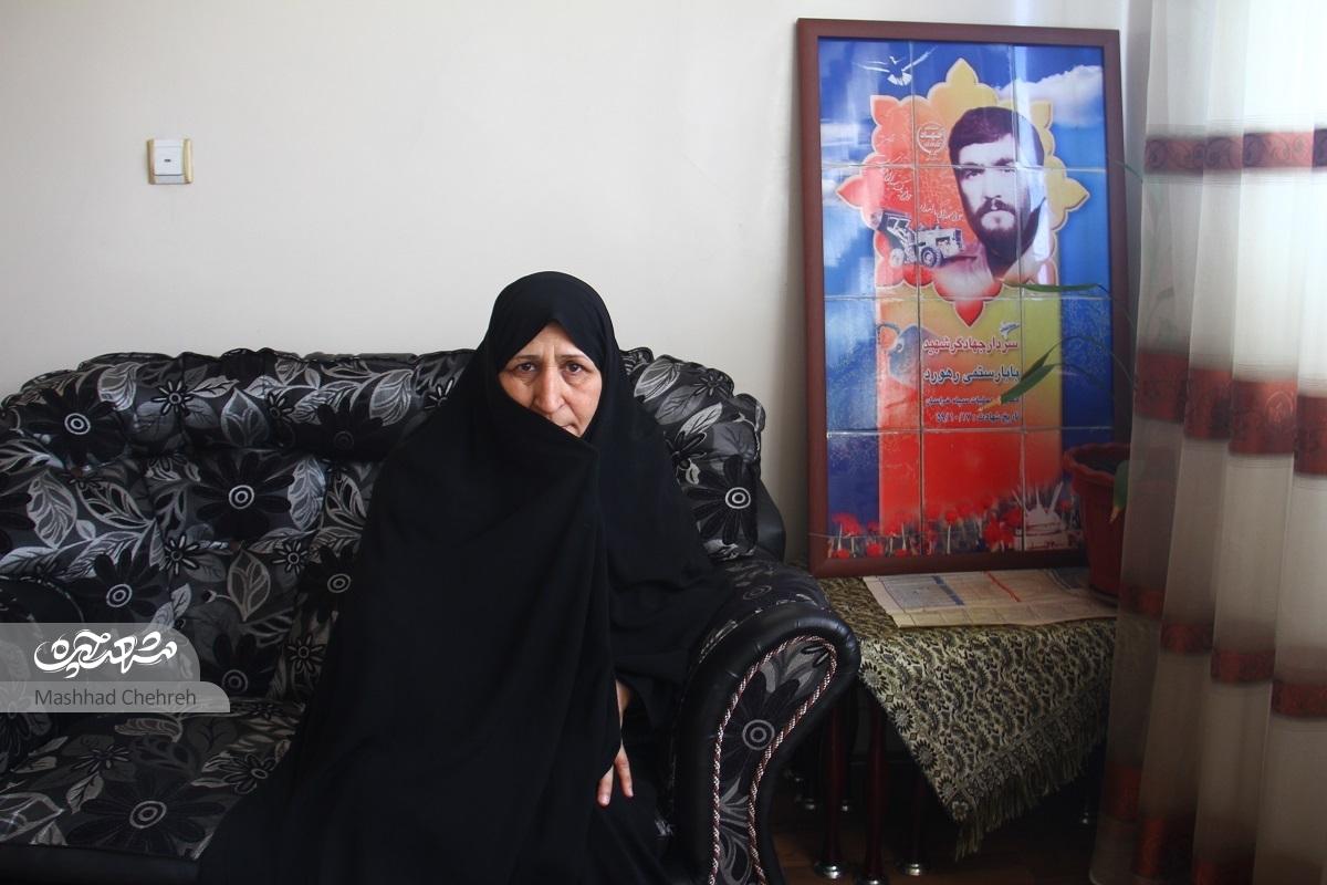 عکس شهید در حالی که لباس سبز رنگی به تن دارد و بچهای در کنارش است، روی دیوار دیگری از اتاق نصب شده است، بیآنکه چیزی بپرسم بهادری سوالم را از نگاهم میخواند و میگوید: این عکس حسن آقاست، تنها پسر شهیدکه آنوقت پنج سال بیشتر نداشت، زهره و فاطمه هم ۹ ساله و هشتساله بودند، بابارستمی این عکس را آخرین باری که به مشهد آمده بود، انداخت و دیگر برنگشت.