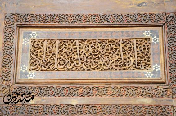 در جواهرنشان دارای چند کتیبه ادبی است که روی یکی از آنها این ابیات نقش خورده است: «شه خلدآشیان فتحعلیشاه /که بادا روح او با روح توأم/ دری از زر خالص پیشکش کرد/ بسبط اشرف اولاد آدم/جسارتپیشه سالارش به یغما/ ببرد و کرد از دینار و درهم/ حسامالسلطنه سلطان مراد آنک/ بود عم شهنشاه معظم/ (این مصراع کنده شده است)/ ز زر و گوهر آوردش فراهم/ در پایین پای خسروی باش/ به تاریخ طرازش گفت خرم». مضمون این ابیات بهویژه آنچه در مصرع پنجم آمده است، نشان میدهد که این در نیزاگرچه درِ اهدایی فتحعلیشاه است، یکبار به غارت رفته و از نو بنیان شده است.
