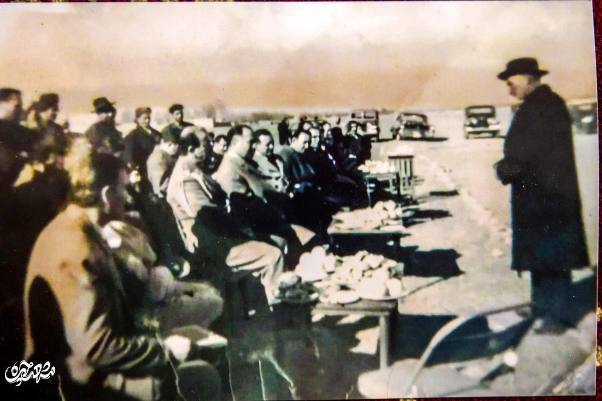 به محض ورودمان عکس قابشده حاج غضنفر روی دیوار اصلی خانه به چشممان میخورد. امیرآقا عکس سیاه سفید دیگری را هم پیش رویمان میگذارد. قدیمیترین عکسی که از پدرش دارد. حاج غضنفر با قامت بلند و کشیده در بارانی مشکی و کلاه شاپو رو به مسئولان نظامی ایستاده و در حال سخنرانی است.