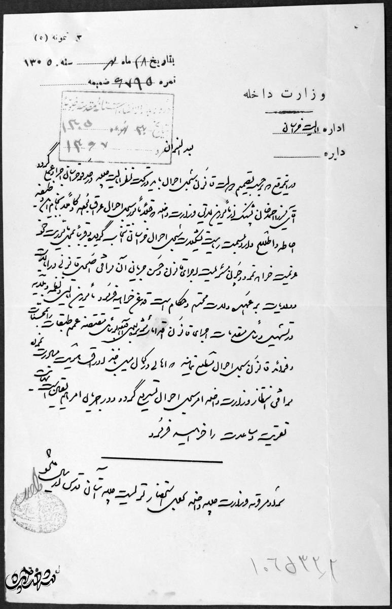 تربت حیدریه: آقای محمدرضا خان تیمورتاش رئیس، آقای یوسف خان نوذری معاون، آقا سید محمد خان شکفته، غلامعلی خان، خلوصی عضو. ترشیز: صفا منش رئیس، فغانی، صالحی، شامبیاتی، عضو. بجنورد: یوسف خان اسفندیاری رئیس، حسین آقا ثقفی عضو. مأمورین تربت حرکت نمودند.»