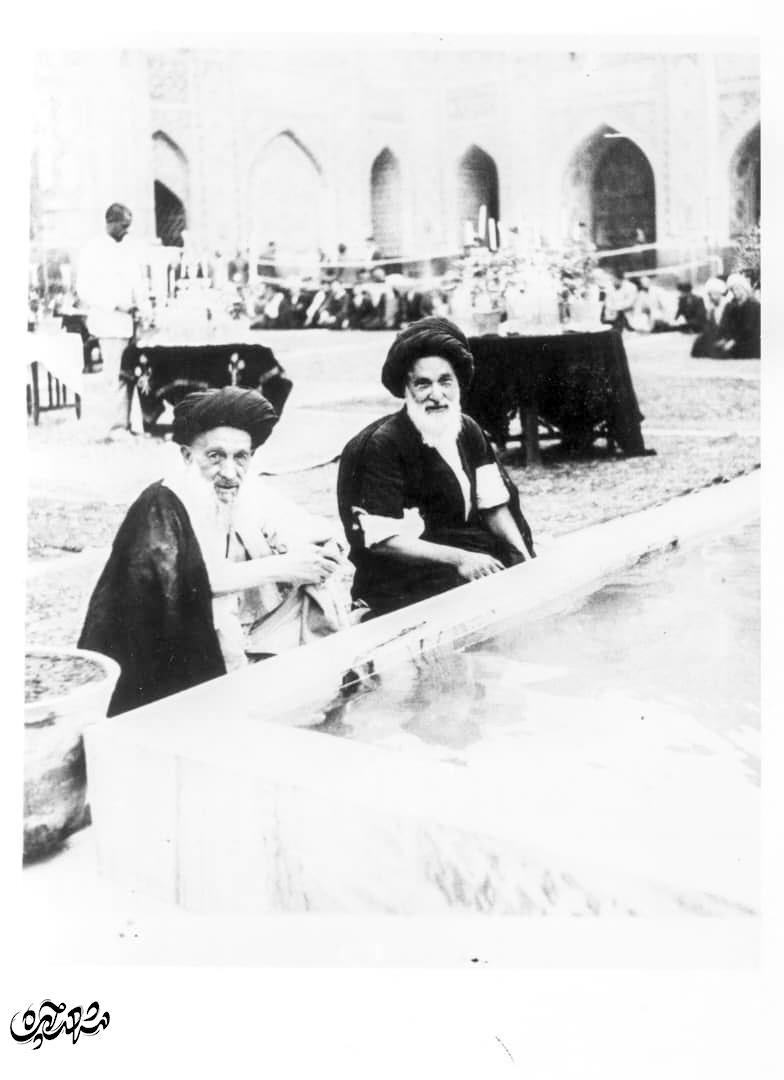 درست در ابتدای این باغ از سوی بست شیخ طوسی، دو مقبره و یک سنگ یادبود قرار گرفته است. قبری که سنگ بزرگ تر و برجسته تری دارد، مربوط به آیت ا... حاج میرزاحسین فقیه سبزواری است که ساخت مدرسه رضوان و همچنین ایجاد محله طلاب برای طلبه های مدارس علمیه مشهد از مهم ترین یادگارهای وی محسوب می شود.