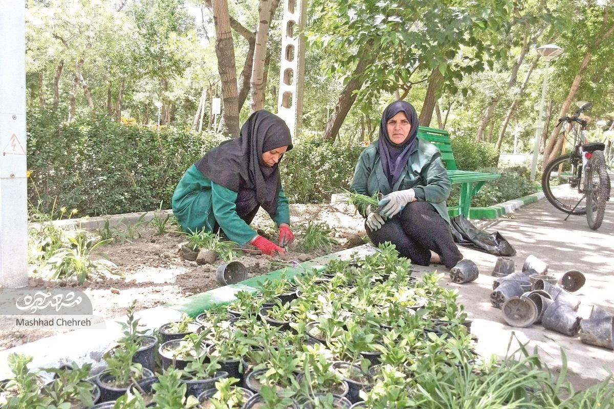 پاکیزگی و سرسبزی بوستان اختصاصی بانوان، حاصل تلاش زنان زحمتکشی است که در این ماه مبارک، مثل روز‌های قبل در محل کارشان حاضر می‌شوند و با دهان روزه، به کار‌های همیشگی‌شان می‌پردازند.