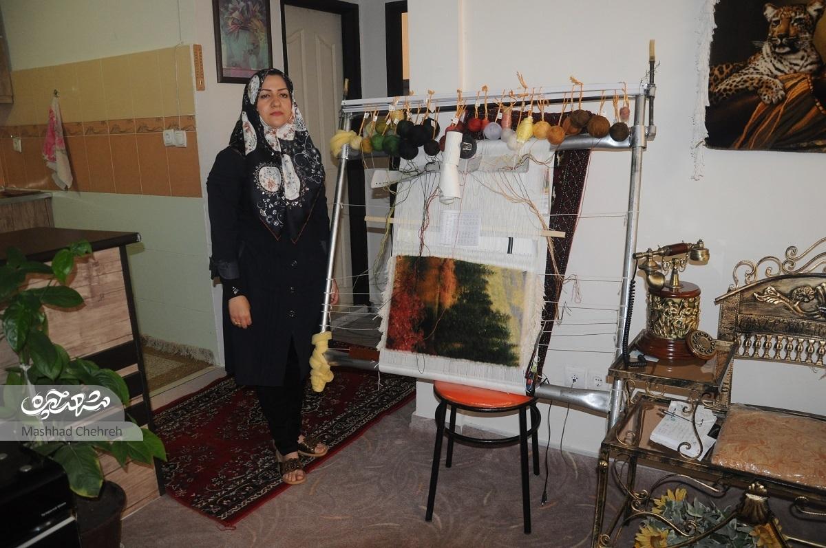میگوید: به خاطر دختر ۵سالهام زیاد امکان بیرون رفتن از خانه را ندارم بنابراین به این نتیجه رسیدم که این هنر برای پرکردن اوقات فراغت، عالی است و با وجود یاد داشتن هنرهایی مانند عروسکسازی و روباندوزی، بافت تابلوفرش برایم جایگاه خاصی دارد.